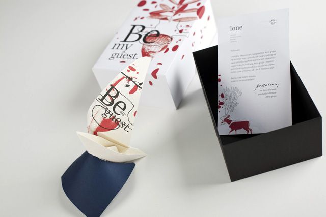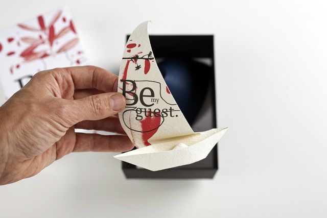 Therefore, the invitation sent to the guests integrates the sailing motif with the inspirational, artistic nature of Hotel Lone – it is a box containing an invitation and a unique ensamble of an origami sailing boat made in Lone colors and a stylized wave motif, that was designed especially for this occasion by Sanja Srbljinović Ćuček, a renowed origami art promotor in Croatia.