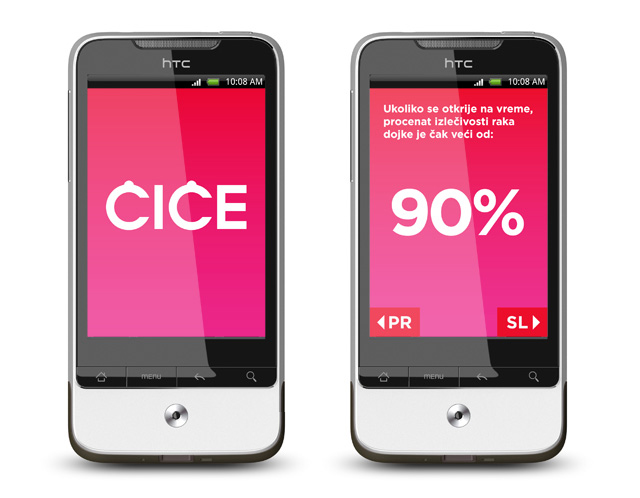 In addition to the reminder, the application also provides a simple and easy to understand instruction manual, outlining the self examination in just a few steps, and lists all the relevant Serbian institutions where women can receive information concerning breast cancer.