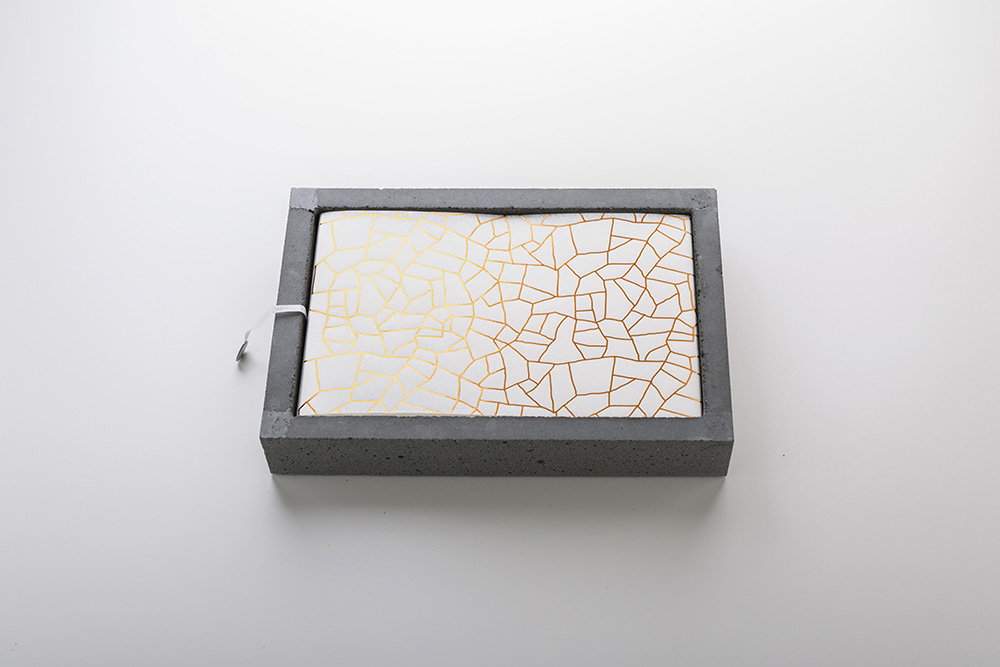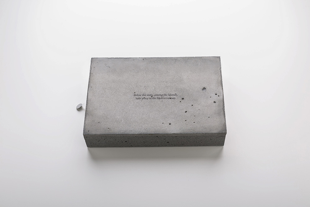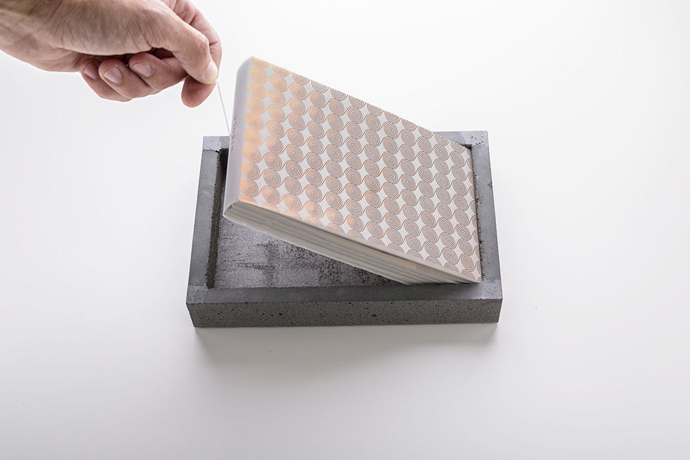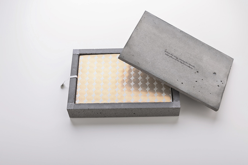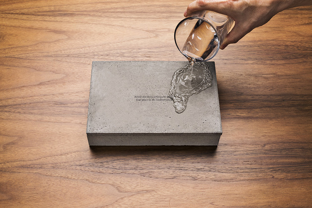 For the same reason, water is a key element helping to uncover the content of the brochure, as only when splashed with water, the concrete cover reveals what is beneath.
