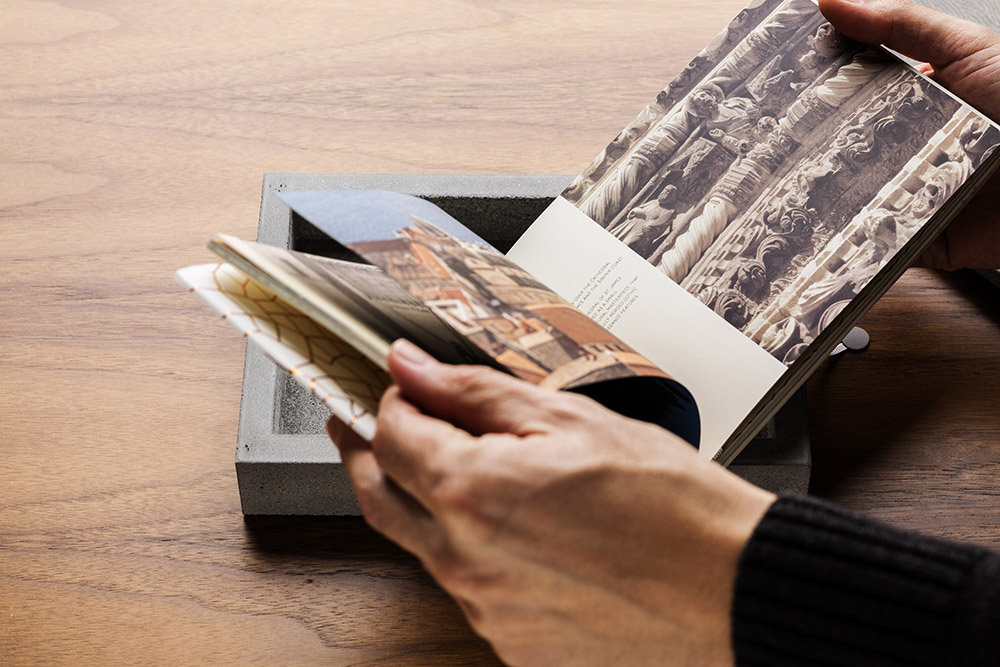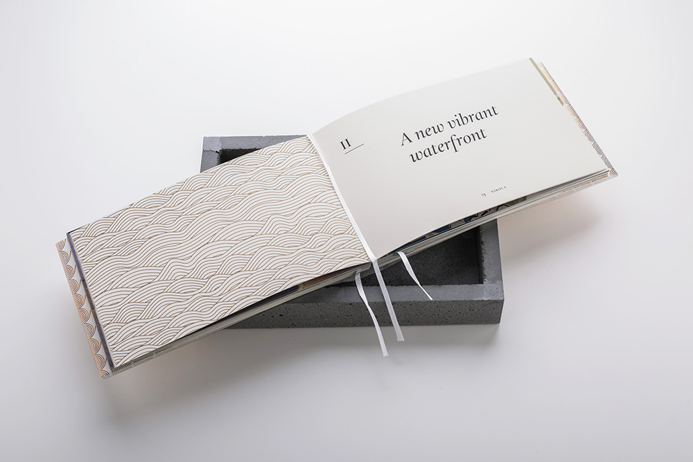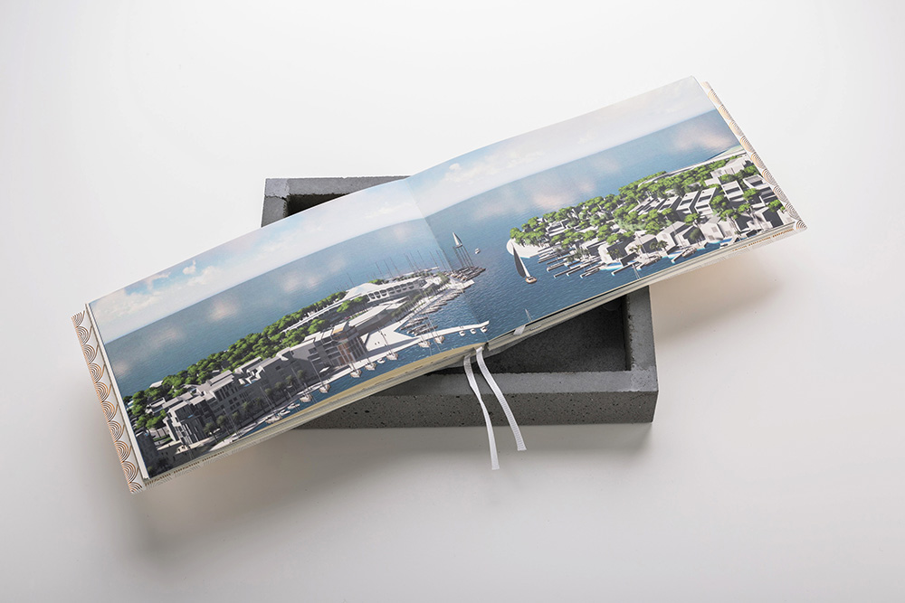 It is the largest premium urban revitalization project in the Adriatic rooted in the local culture and heritage. The publication is embedded within the concrete block representing a cornerstone, a pledge of an edifice or infrastructure that is yet to take its physical shape as a result of an architect’s vision.