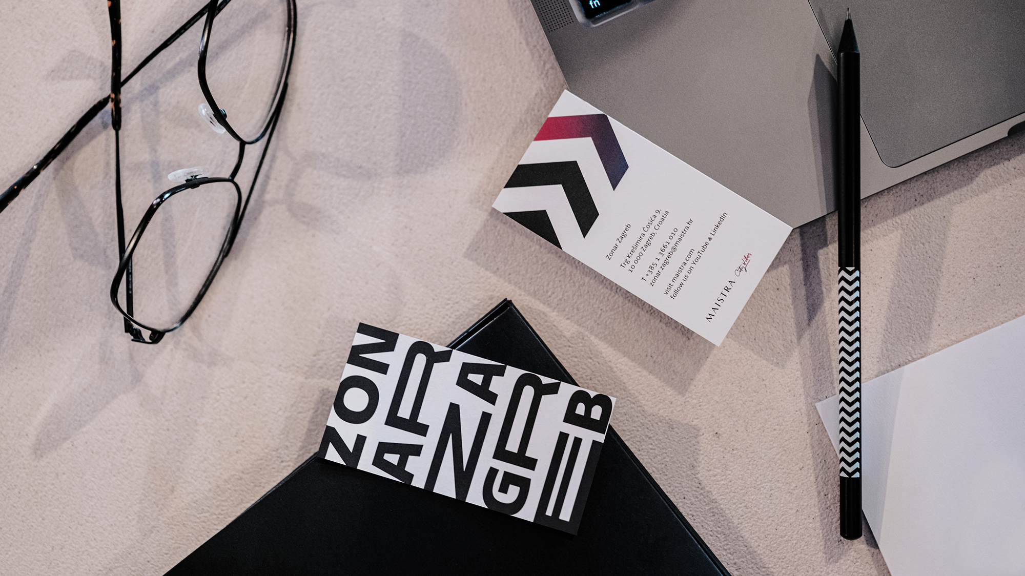 The Zonar Zagreb Hotel’s identity design was inspired by the pace of modern life. The logo is modular, “moving” and changing through four iterations. It is vertically aligned to evoke the skyscraper with the tallest hotel in Zagreb. The arrows from the outer flank of the hotel form an additional graphical element of the identity, while the photo art direction applies the motion blur technique to intensify the movement effect.