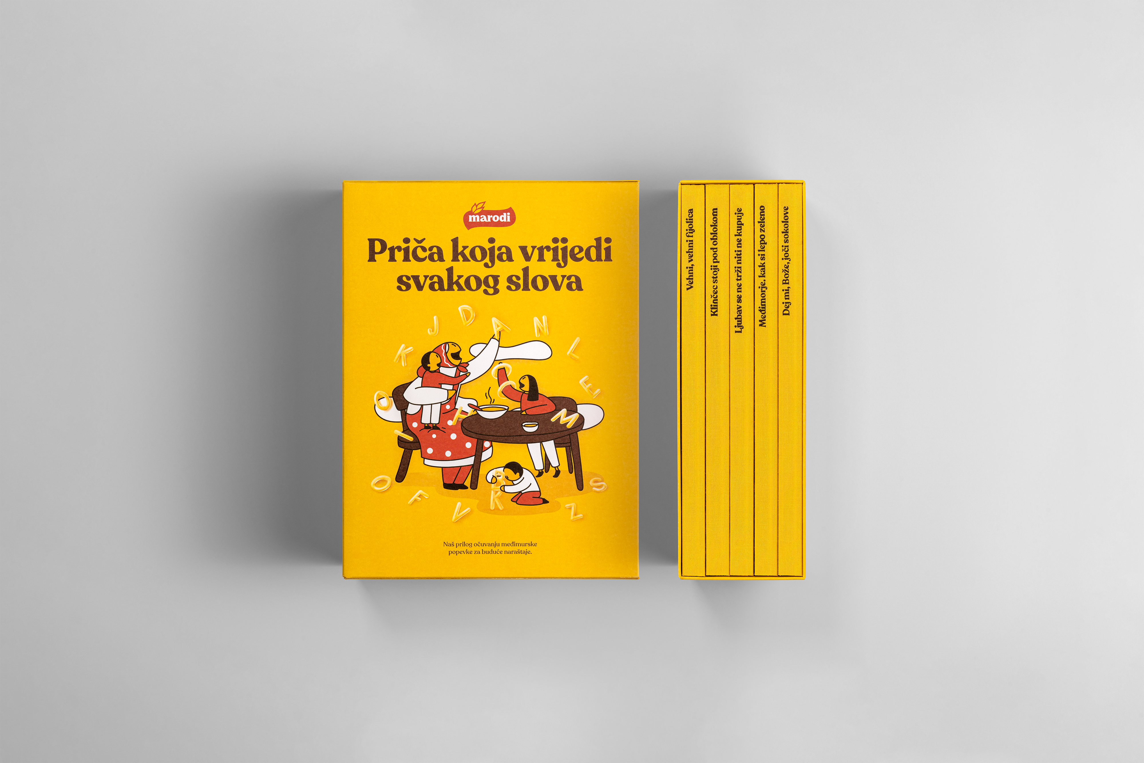 In 2018, the Međimurska popevka was inscribed on UNESCO’s Representative List of the Intangible Cultural Heritage of Humanity, where it will remain protected as long as it is in use. To contribute to the preservation of the Popevka, a limited edition of a collection of five books was created, each book accompanied by a special packaging of Marodi alphabet pasta for soup, with the exact number of letters needed to form the song.