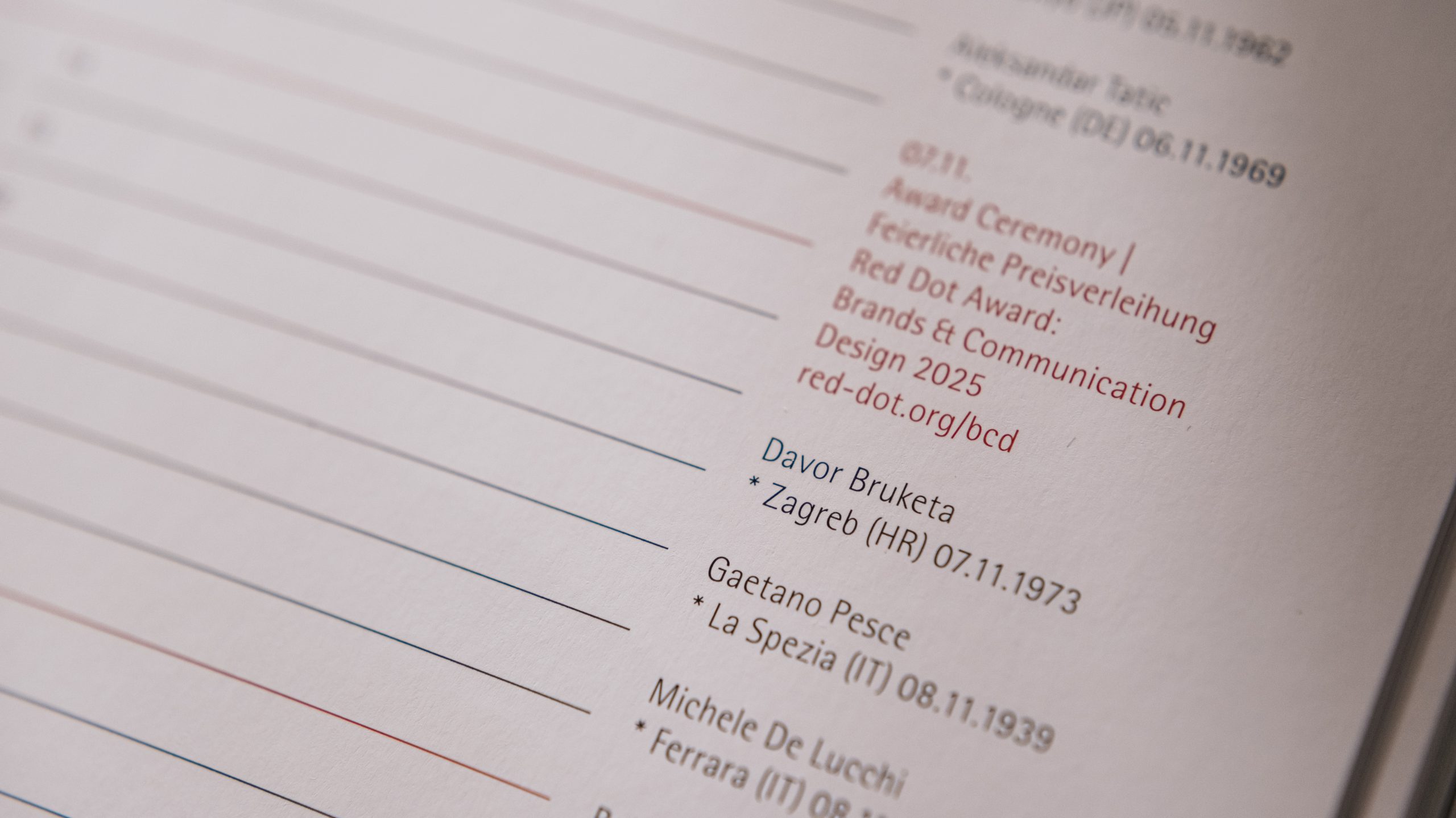 Davor Bruketa has become the first Croatian designer to be included in the Red Dot Design Diary. This special publication is released annually by the organizers of the global Red Dot Design Award. The publication is designed to combine practical information and inspiration for designers, as well as professionals connected to design across various industries. It also includes a list of the most influential contemporary designers from different generations, such as Alvar Aalto, Ron Arad, Neville Brody, Stefan Sagmeister, Irma Boom, and many others.