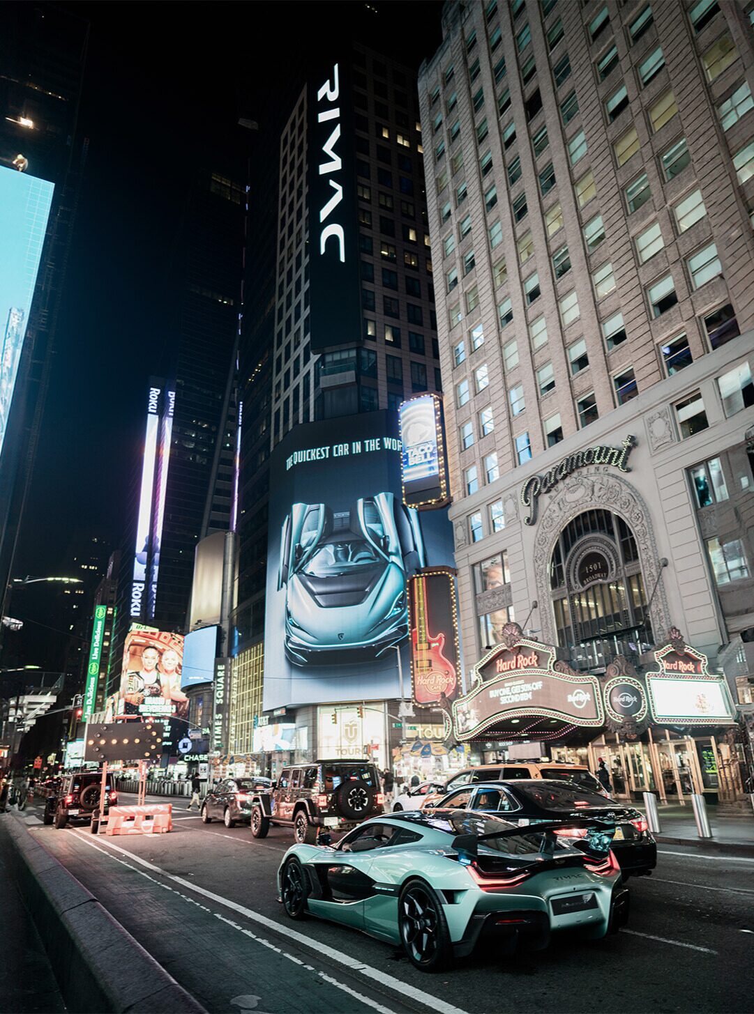 After the premiere, a series of short videos was launched on TikTok, conveying the rebellious spirit and raw energy of the new car — the Nevera R. The campaign’s culmination took place at the iconic Times Square in New York, where a refined version of one of the TikTok videos was displayed on a digital billboard, ensuring maximum global visibility.