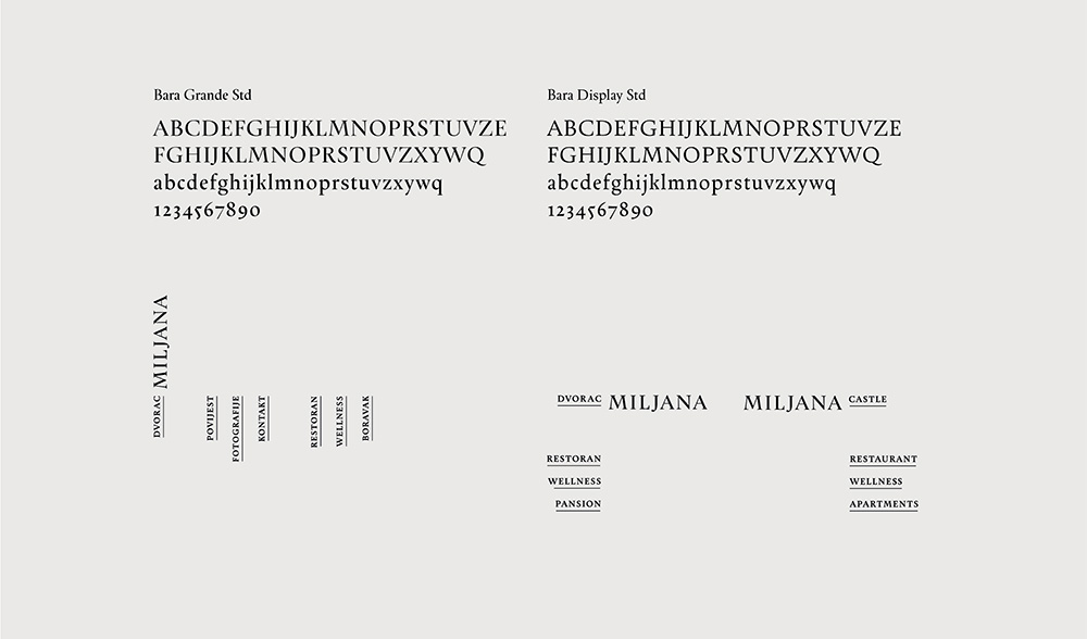 Nova tipografija Bara Nikole Đureka, u svjetskim razmjerima istaknutog hrvatskog tipografa iz obližnjeg Zaboka, suvremena je reinterpretacija pisma iz 16. stoljeća. Serifna Bara bavi se upravo povijesnim razdobljem u koje sežu i počeci dvorca Miljana i čini prikladan izbor za identitetsko pismo.