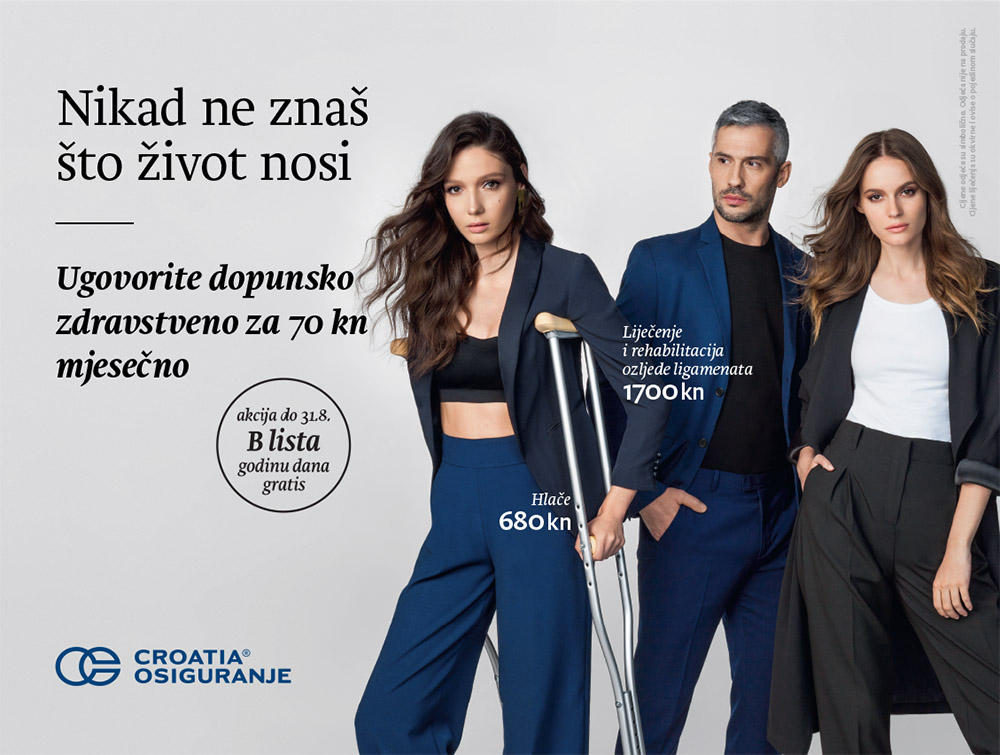 Ovime su Croatia osiguranje i agencija nastojali pokazati kako smo često spremni potrošiti novce na najnoviji modni dodatak no isto propuštamo učiniti kad je u pitanju naše zdravlje. Namjera je bila podsjetiti javnost kako nas dopunsko zdravstveno osiguranje košta daleko manje od novog komada odjeće koji se ove sezone “nosi”, a prevenira i neočekivane, visoke troškove liječenja.