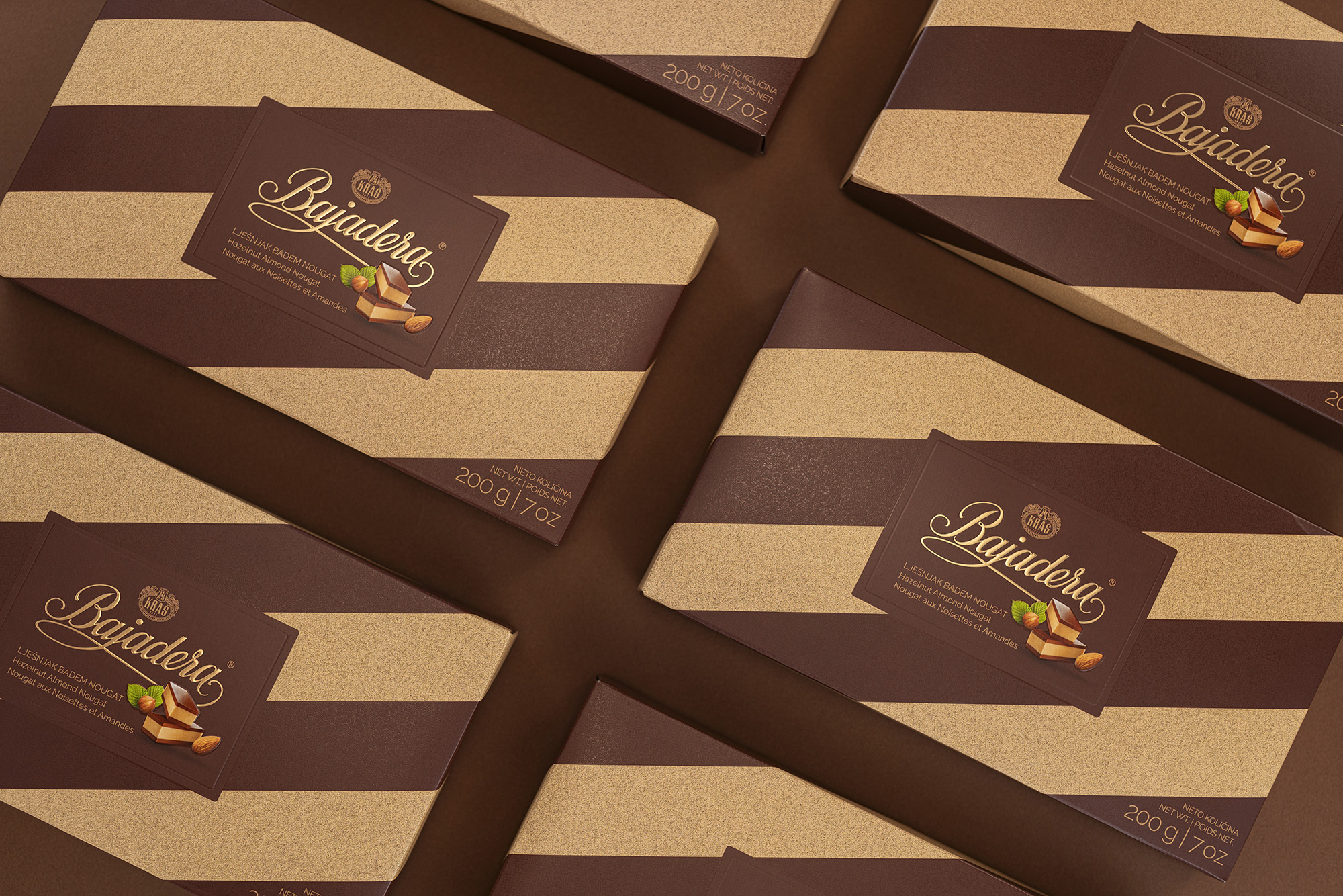 Bajadera je jedan od ikonografskih hrvatskih proizvoda. Pojavila se 1954. i od tada predstavlja jedan od najpostojanijih Kraševih brendova, a svih ovih godina zadržala se u okvirima izvorne recepture i kontinuirane kvalitete. Ususret sedamdesetome rođendanu, zadatak agencije Bruketa&Žinić&Grey bio je modernizirati ambalažu ove kraljice pralina.
