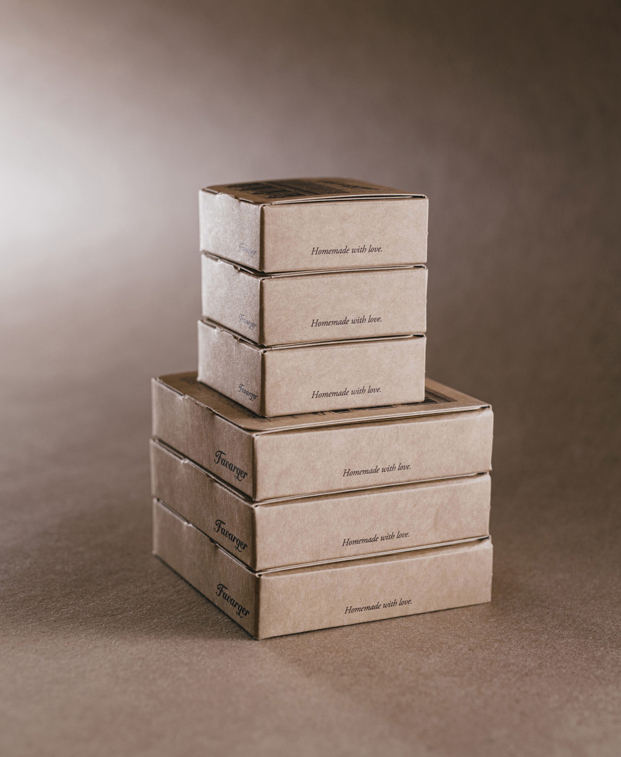 Oprema pakiranja vođena je klasičnim pristupom u čokolatijerskom pristupu ambalaži, u kojem se ono najčešće sastoji od više komponenti čime se povećava doživljaj otvaranja i posebnosti proizvoda iznutra. To se posebno odnosi na kutije bombonjera i pakiranja koja se uobičajeno kupuju kao pokloni. No, čokoladoljupci često žele uživati u čokoladi ili pralinama odmah, a upravo zbog toga Favarger u svom portfelju ima i razna self-consumption pakiranja – od cone boxa koji se drži u ruci, do posebno slatkih malih balotine kutijica u kojima kupac bira 4, 8 ili 16 omiljenih pralina. Postoji i posebno pakiranje za lom čokoladu koje u donjem dijelu celofanske vrećice ima papirnato ojačanje kako bi se spriječilo topljenje čokolade.