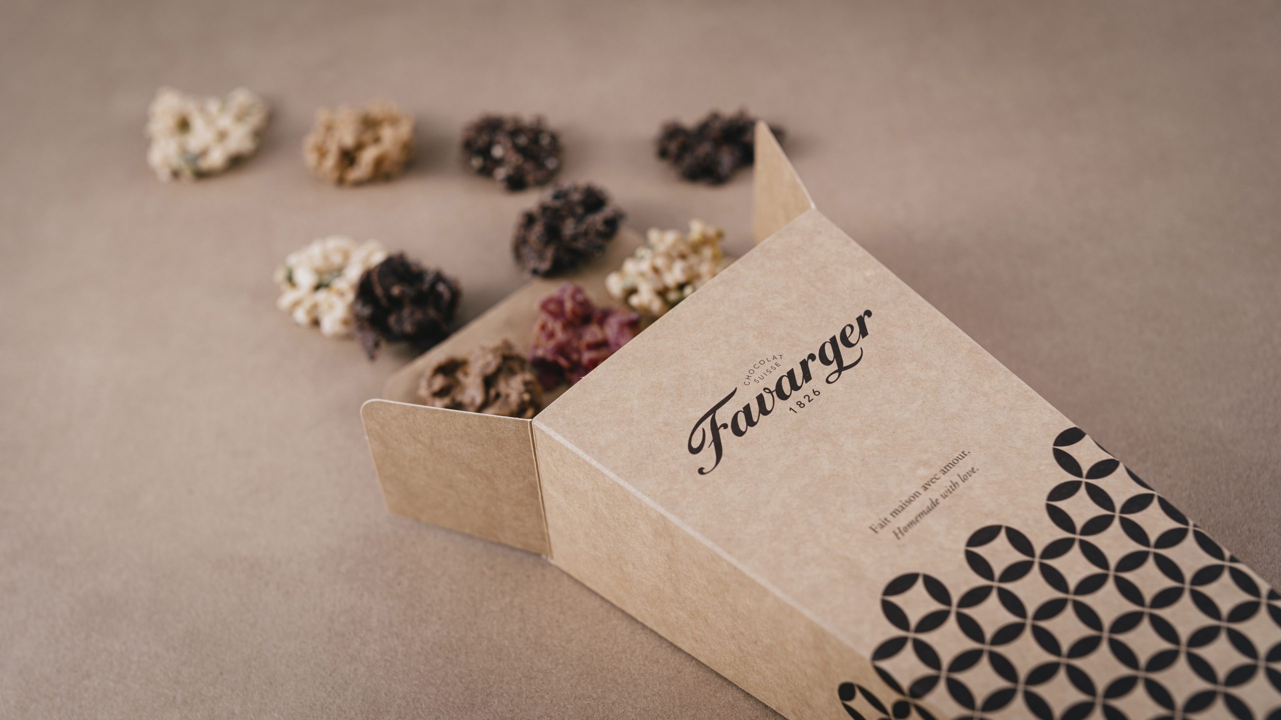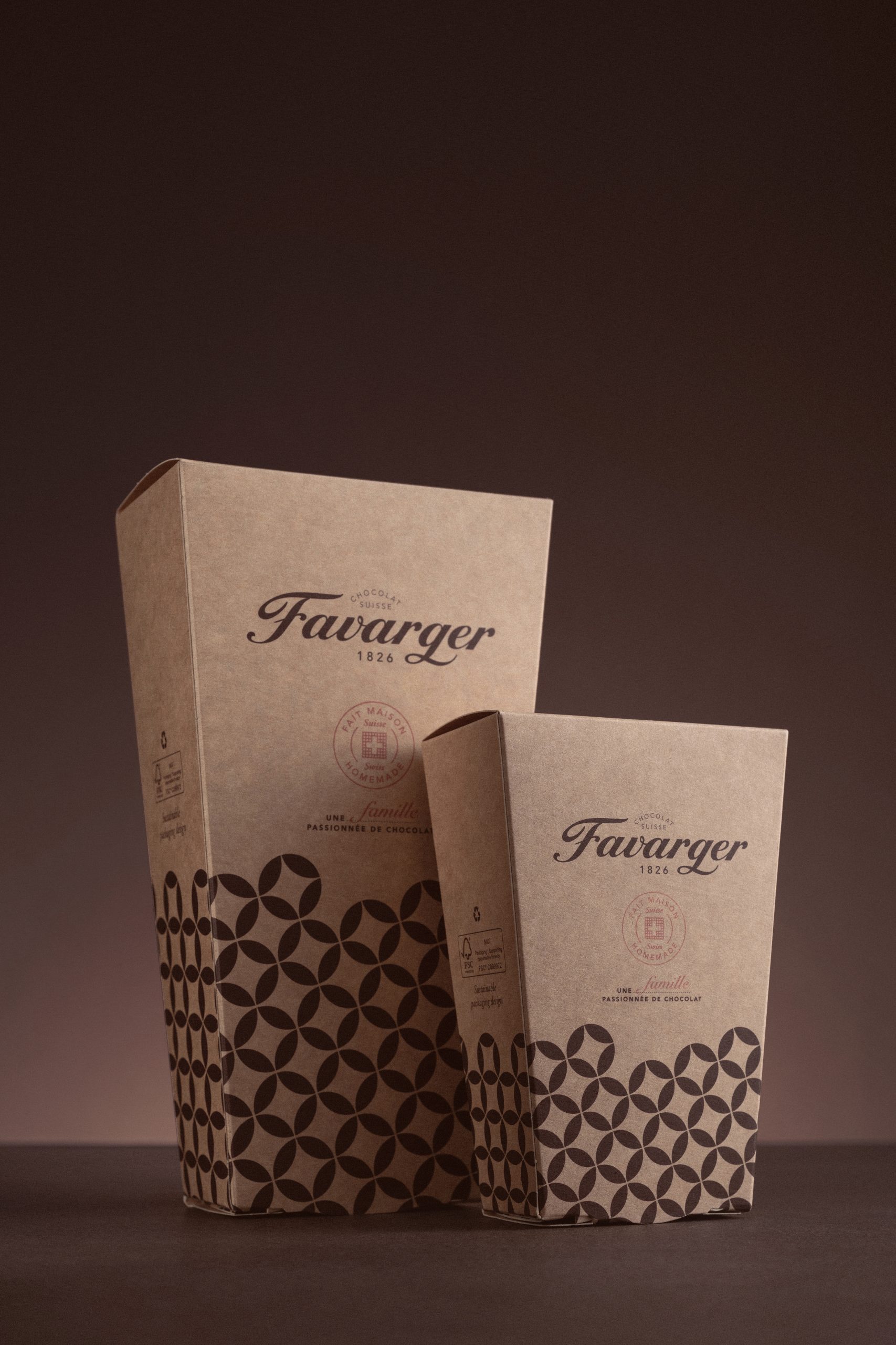 Favarger se predstavlja kao „passionate chocolate family“ (strastvena čokoladna obitelj), što u smislu dizajna i komunikacije, potvrđuje na svakom pakiranju potpisom i pečatom – od jednostavnijih pakiranja u celofanskim vrećicama, do zahtjevnijih kutija za praline.
