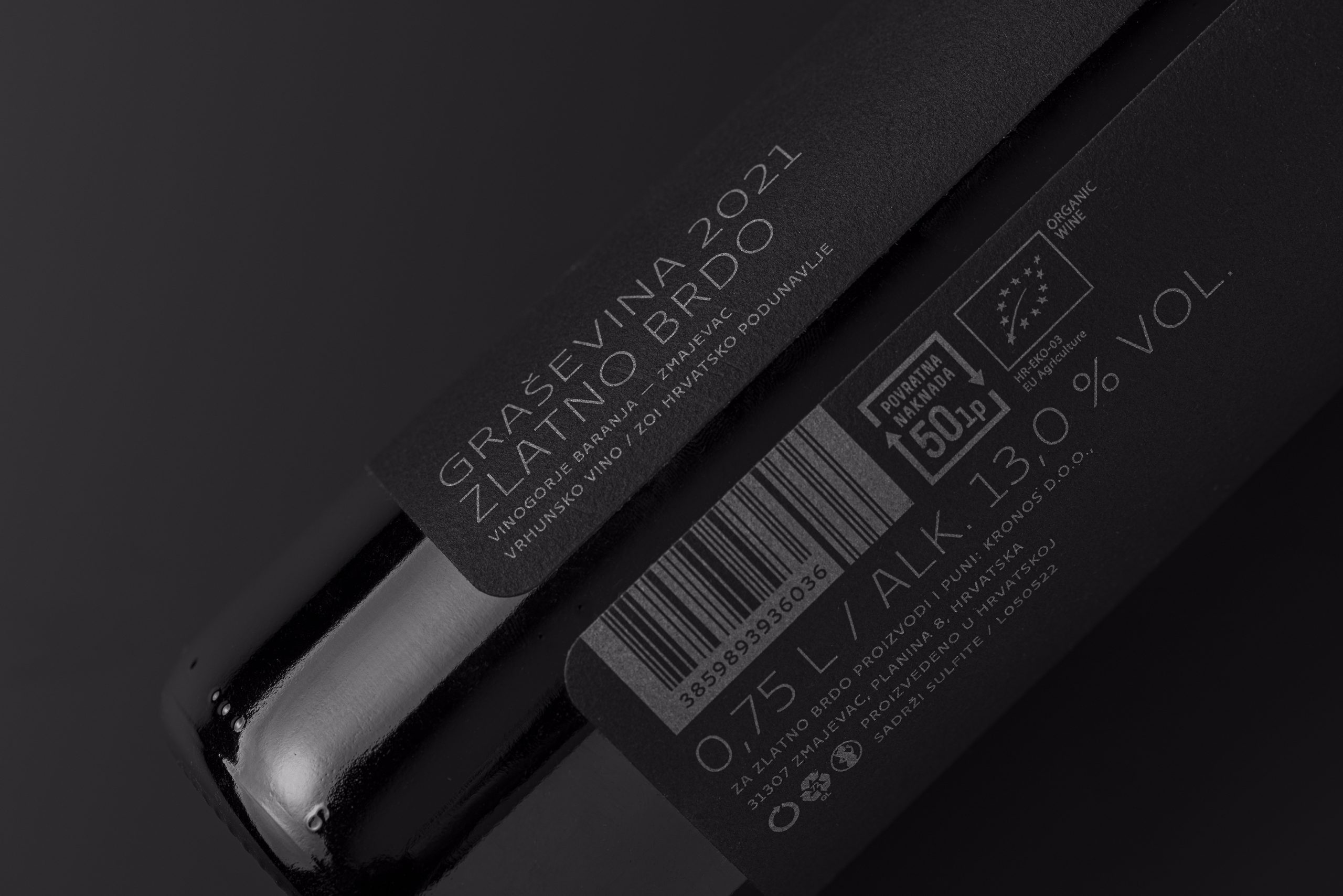 Agencija Bruketa&Žinić&Grey dobila je zadatak redizajnirati ambalažu njihovih vina, a tijekom razvijanja ideje nastao je i novi znak vinarije koji utjelovljuje filozofiju brenda. Ideja za dizajn etikete proizlazi iz činjenice da je taj znak dovoljno jak da mu ne treba ništa drugo. Znak na monumentalan i jednostavan način simbolizira i lokalitet Zlatno Brdo i gatore u kojima vina dozrijevaju, kao i priču čitave baranjske vinske regije.