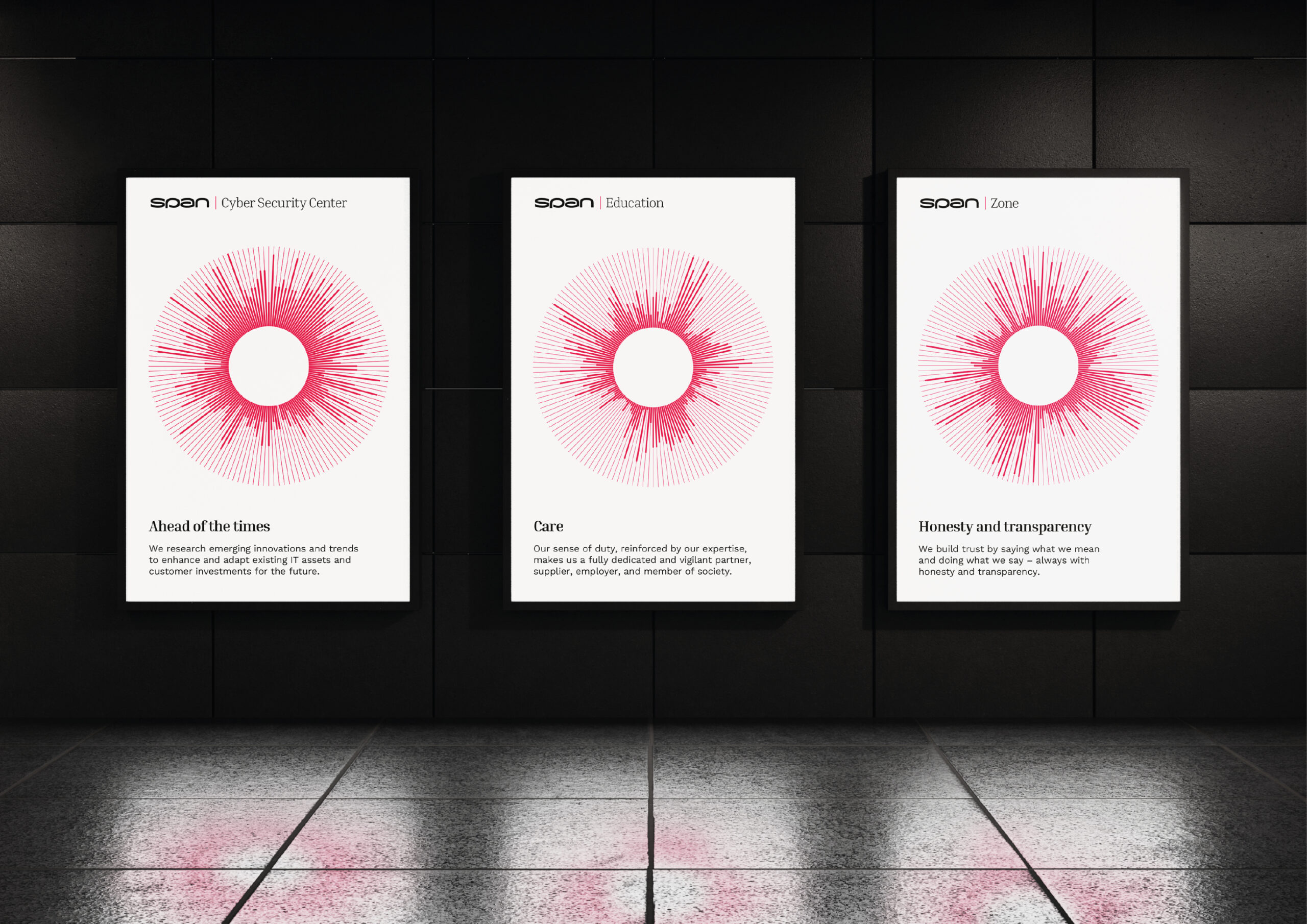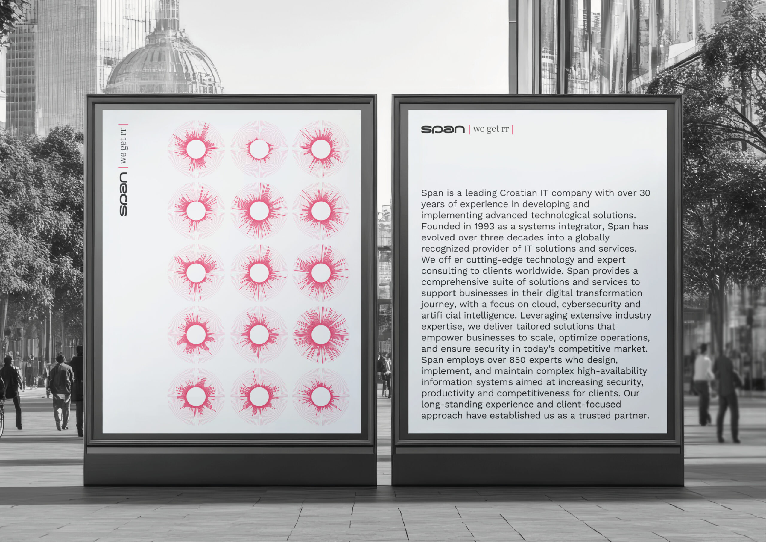 Rebranding kompanije Span proveden je kao odgovor na potrebe tržišta i interne ambicije daljnjeg rasta i internacionalizacije. Odluka o redefiniranju vizualnog identiteta, slogana i ukupne komunikacijske arhitekture nije bila samo estetska, već duboko strateška – usmjerena na jačanje tržišne pozicije Spana kao multi-specijalista s fokusom na tri strateška područja: Cyber security, Cloud i AI.